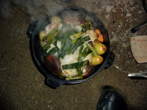 ダッチオーブンで焼きます この時白ワインを少々(残りはぴすが・・・・ ウフ)
