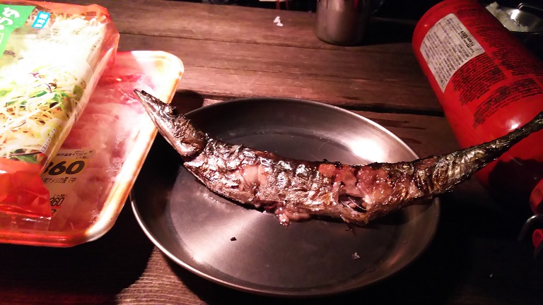 お夕食 たき火で秋刀魚♪ うまく焼けてるでしょ~