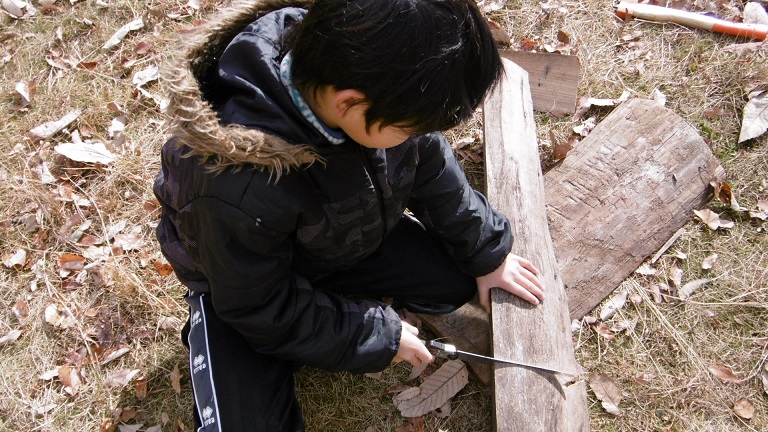 昼間のうちに薪を切らねば♪