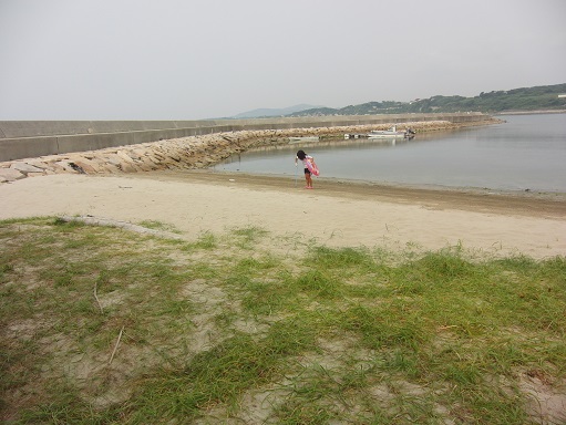 漁港の隣にも小さな浜があります うみちゃん 蟹さんと戯れ中(笑)
