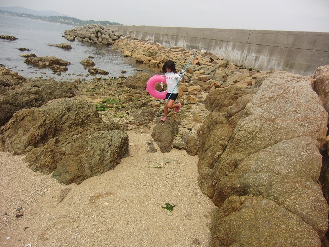 潮だまりに お魚いるかも〜と ヤスの練習に・・・が おりません(笑)