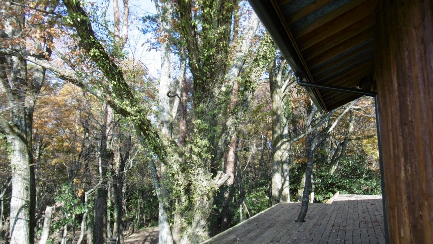 管理棟の裏側デッキ めっちゃ森の中でございます