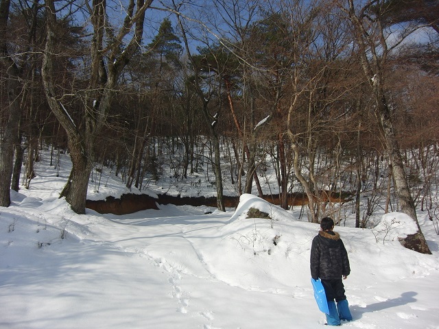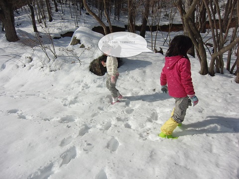 雪をもとめて自然の森に行ったぴす家