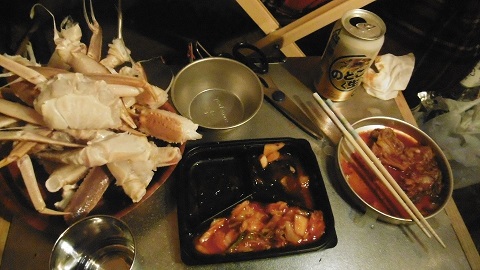 キャンプでかに鍋。初めての経験。