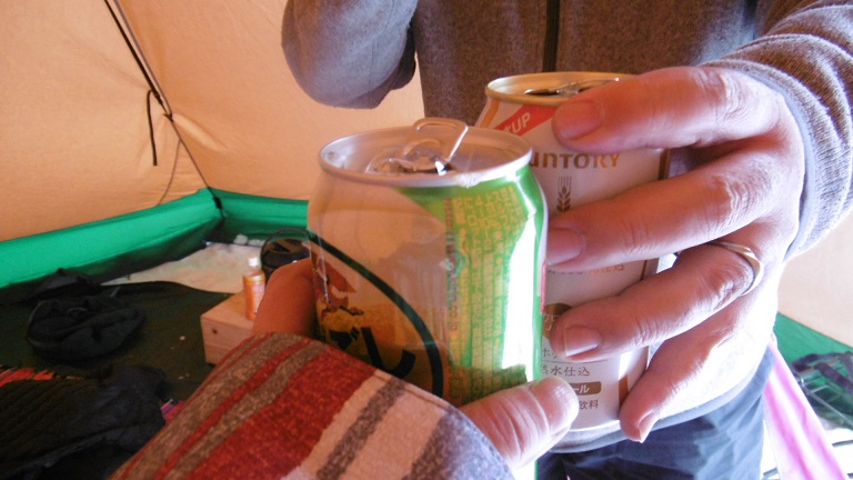 で ほとんど設営が終わったところで やっと乾杯♪