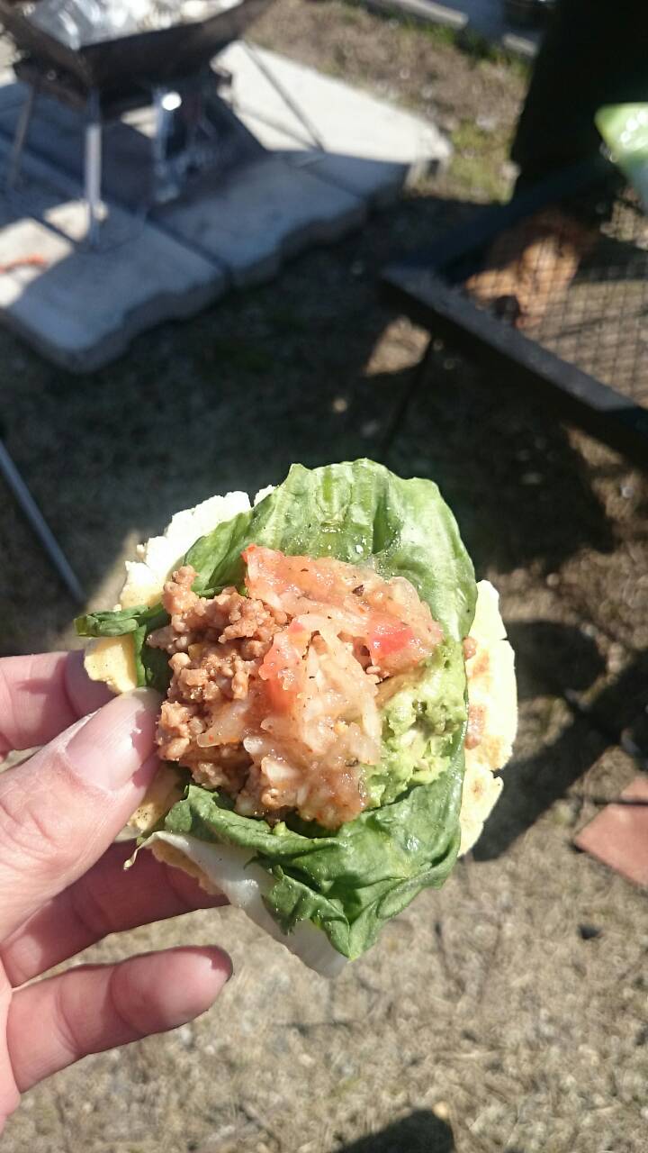 さて お昼はうまく焼けないタコスを食べて〜