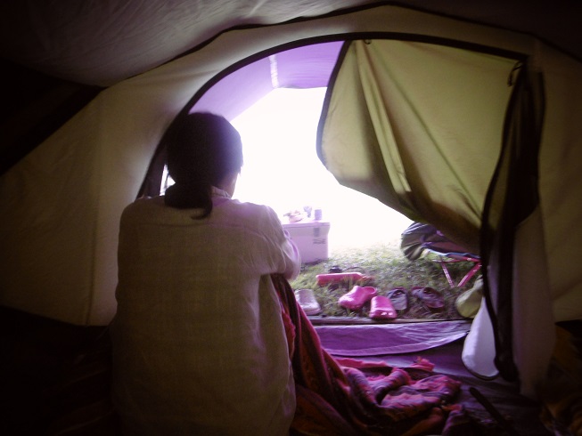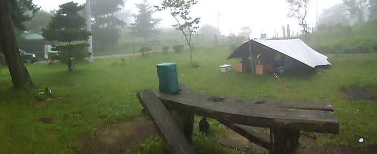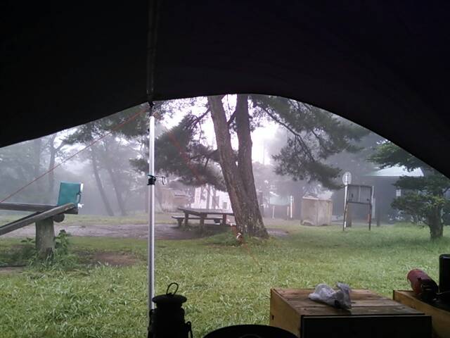 しか〜し 低く張られたタープから見えるのは 霧と雨。。。