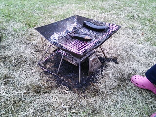 で・・・・ この時ね たき火台からこぼれ落ちた火種