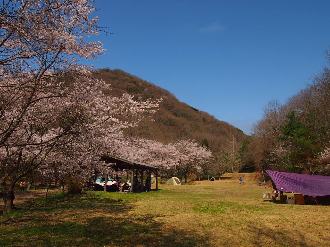 桜と紫のタープ。