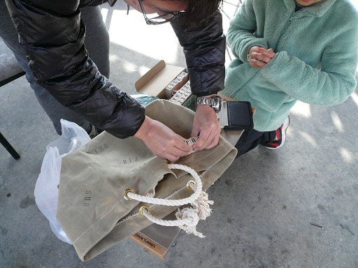 自作バッグ、イカしてますね!!