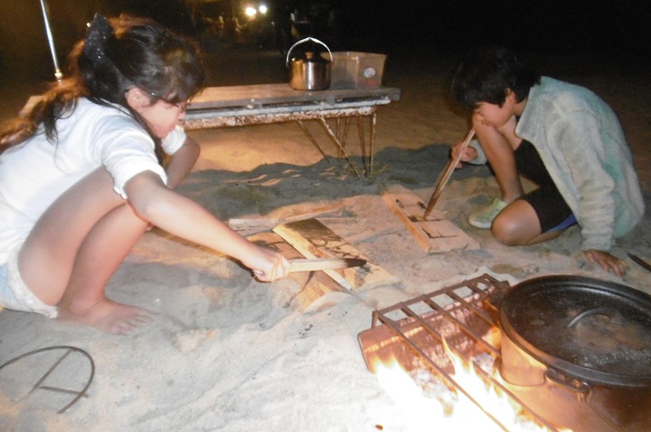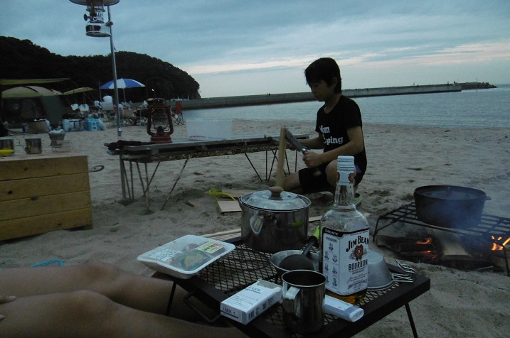 シャワーを浴びて たき火 そして夕食