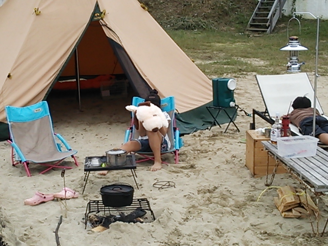 直火でのCamp場。。。 ほかの方がたき火に突っ込まないように ガードww