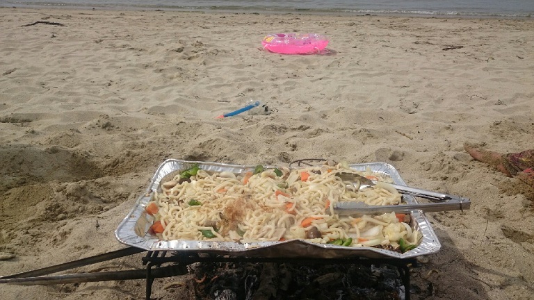 浜辺で焼きうどん めっちゃうまい♡