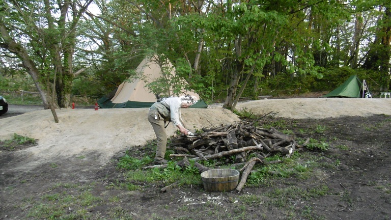 kimamaさんはたき火の準備