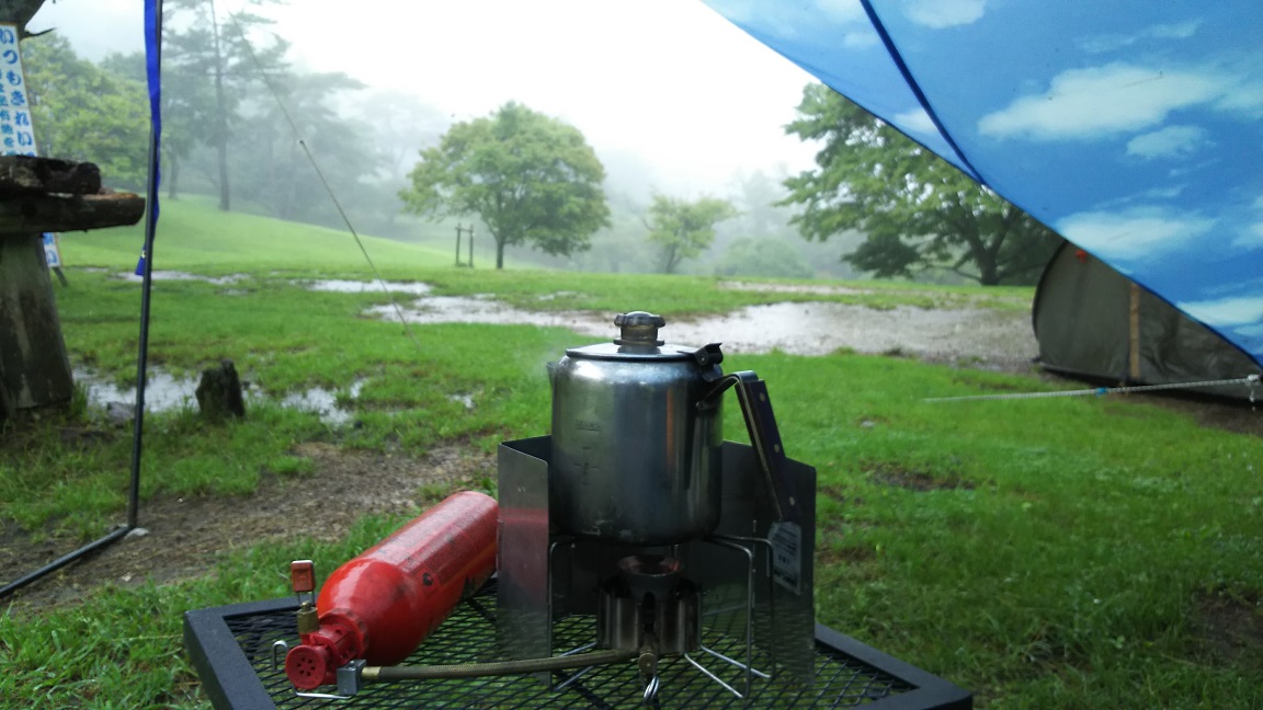 そんなわけで~ 青空タープに間借りして~ のんびり雨音とおしゃべりを楽しみます