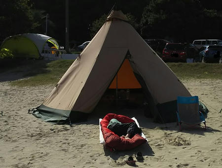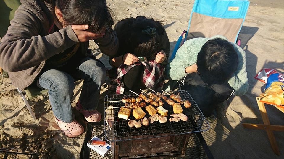 お隣ではたき火 ナイスアイデア 50cmはほられた砂の中でたき火