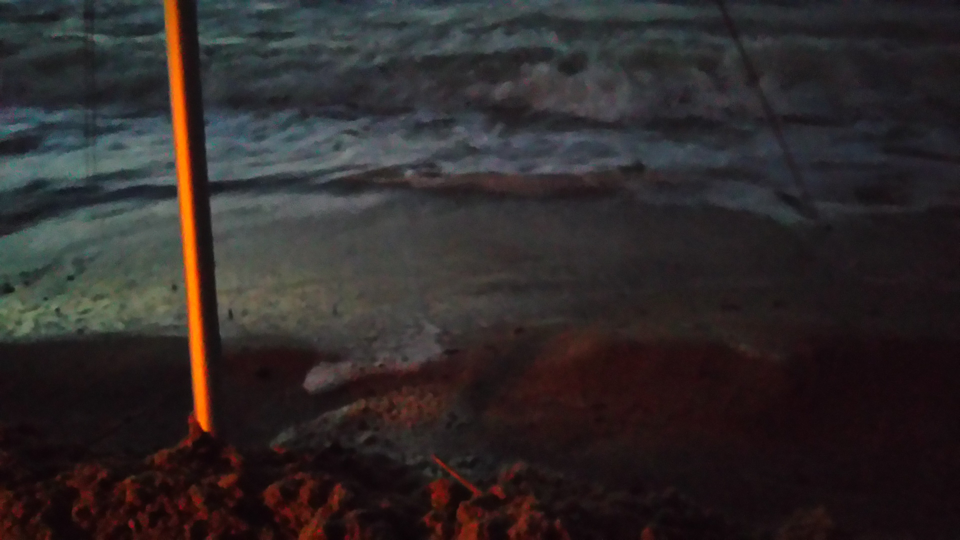 夕方になっても波が収まらない どーーーーも波打ち際が近い ( 一一)