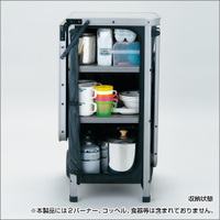 さらに この写真にもあるように ツーバーナまで収納できる そしてキャスターこれならキャンプ後の片付けも簡単♪