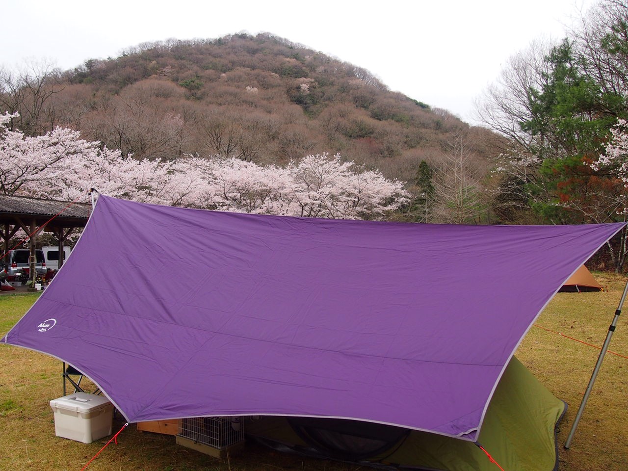 桜と紫のタープ。