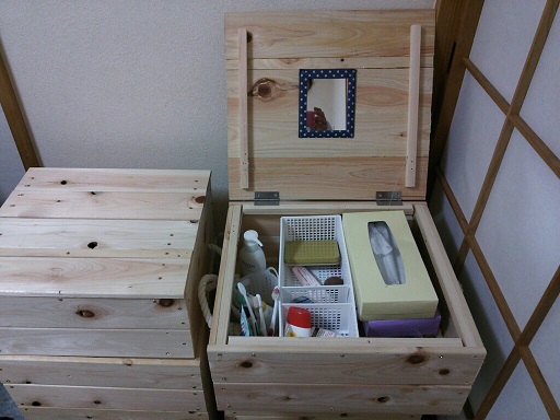 ここに化粧品や薬 コンタクトや眼鏡なんかをいれますので